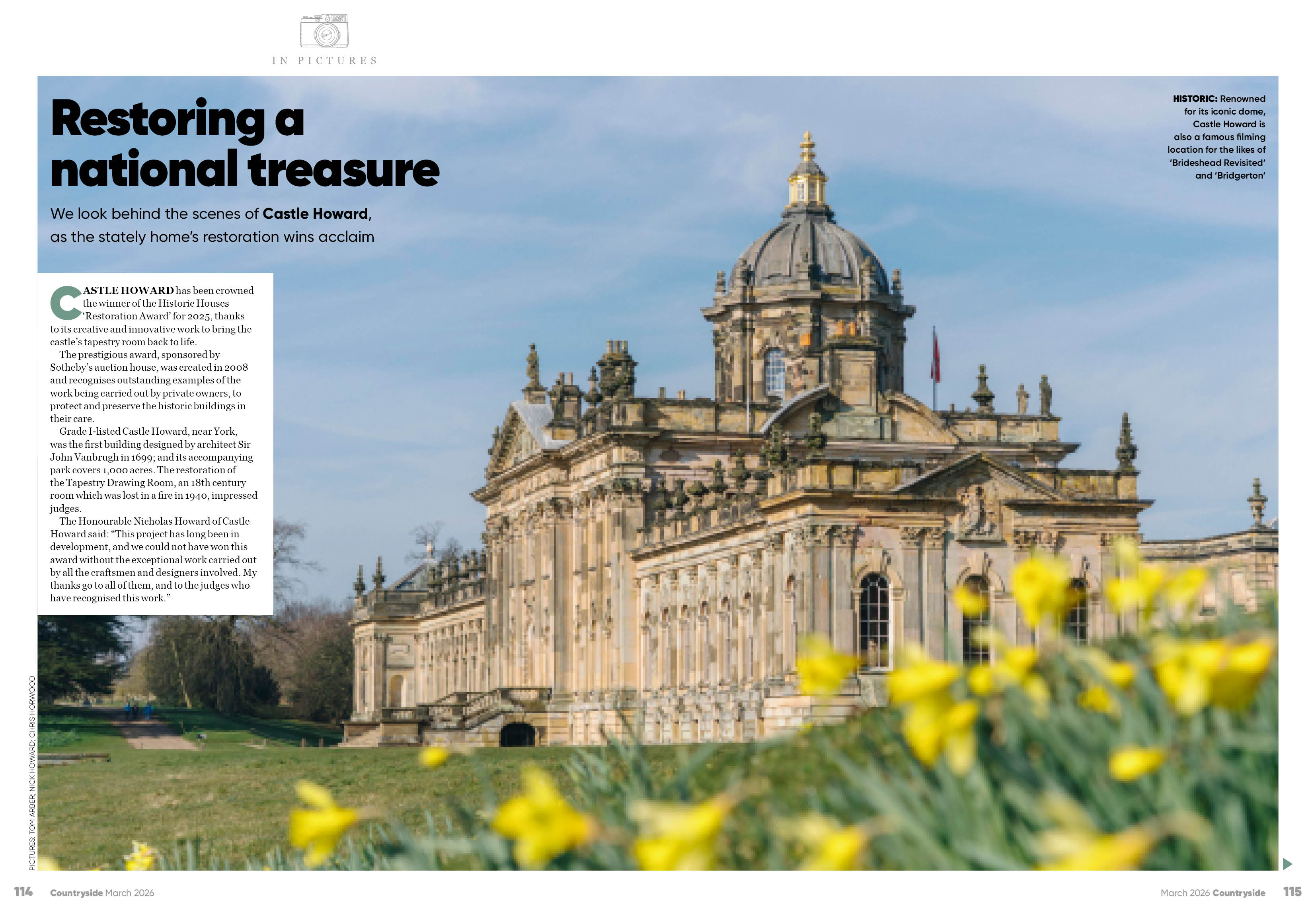 This month, we shine a spotlight on Yorkshire’s Castle Howard, which has been undergoing a major restoration, particularly to its Tapestry Drawing Room, an 18th century room that was lost to a fire in 1940.