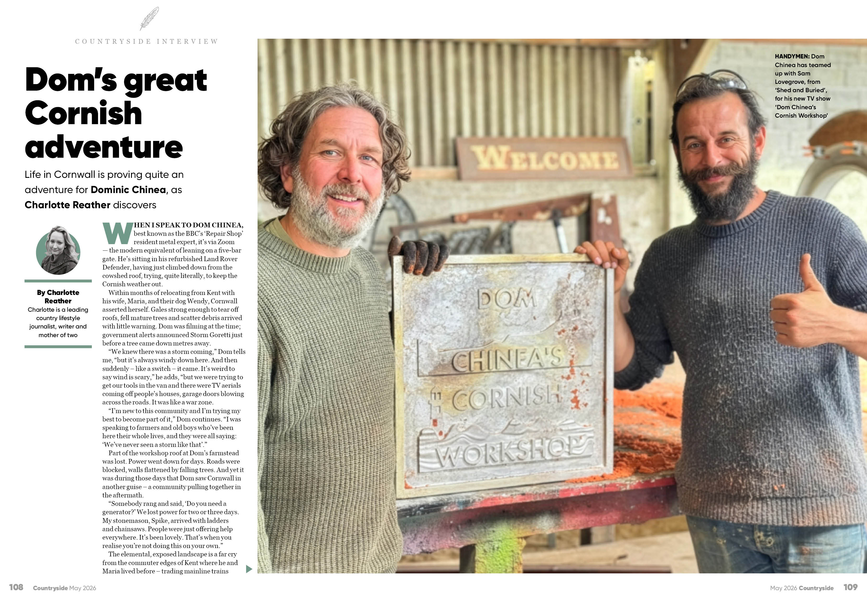 - Dom’s Cornish workshop - Dominic Chinea is an expert craftsman and member of the team on the BBC's much-loved ‘Repair Shop’. His restoration work and affable manner have made him a favourite with viewers and we chart his move to rural Cornwall