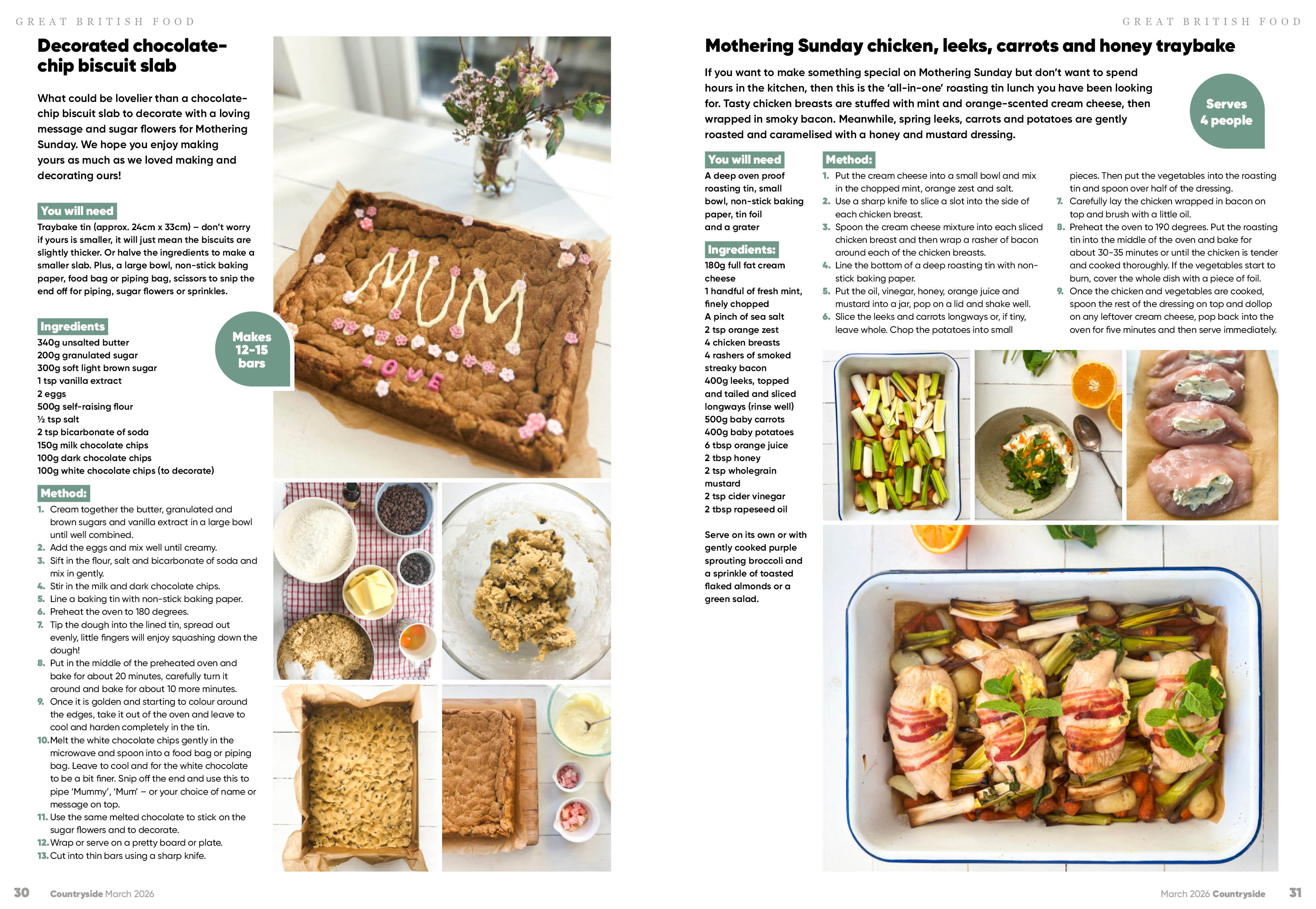 - Great British food - Miranda Gore Browne looks at recipes for Mother’s Day, including a plaited golden fruit loaf and chocolate-chip biscuit slab cake