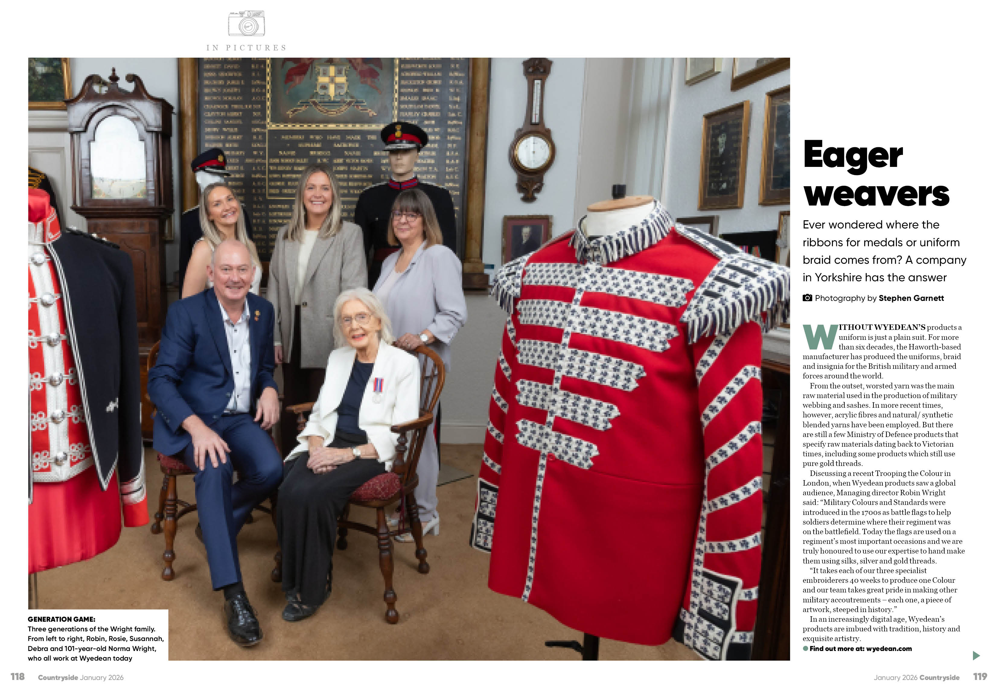 We’ve headed down to Cornwall to chat to Andrew Jamieson, an artist who specialises in heraldic art and calligraphy. If the name is unfamiliar to you, you might remember his exquisite work adorning the invitation to King Charles’s Coronation. We’ve also gone behind the scenes at Wyedean Weaving up in Yorkshire – a company that has a fascinating history and, today, makes many of the ribbons, banners and braid for the British armed forces. For them, Trooping the Colour is more than a parade – it’s a proud showcase of their craft. You can see some of their work on the front cover and later in the magazine, on pages 118-123.