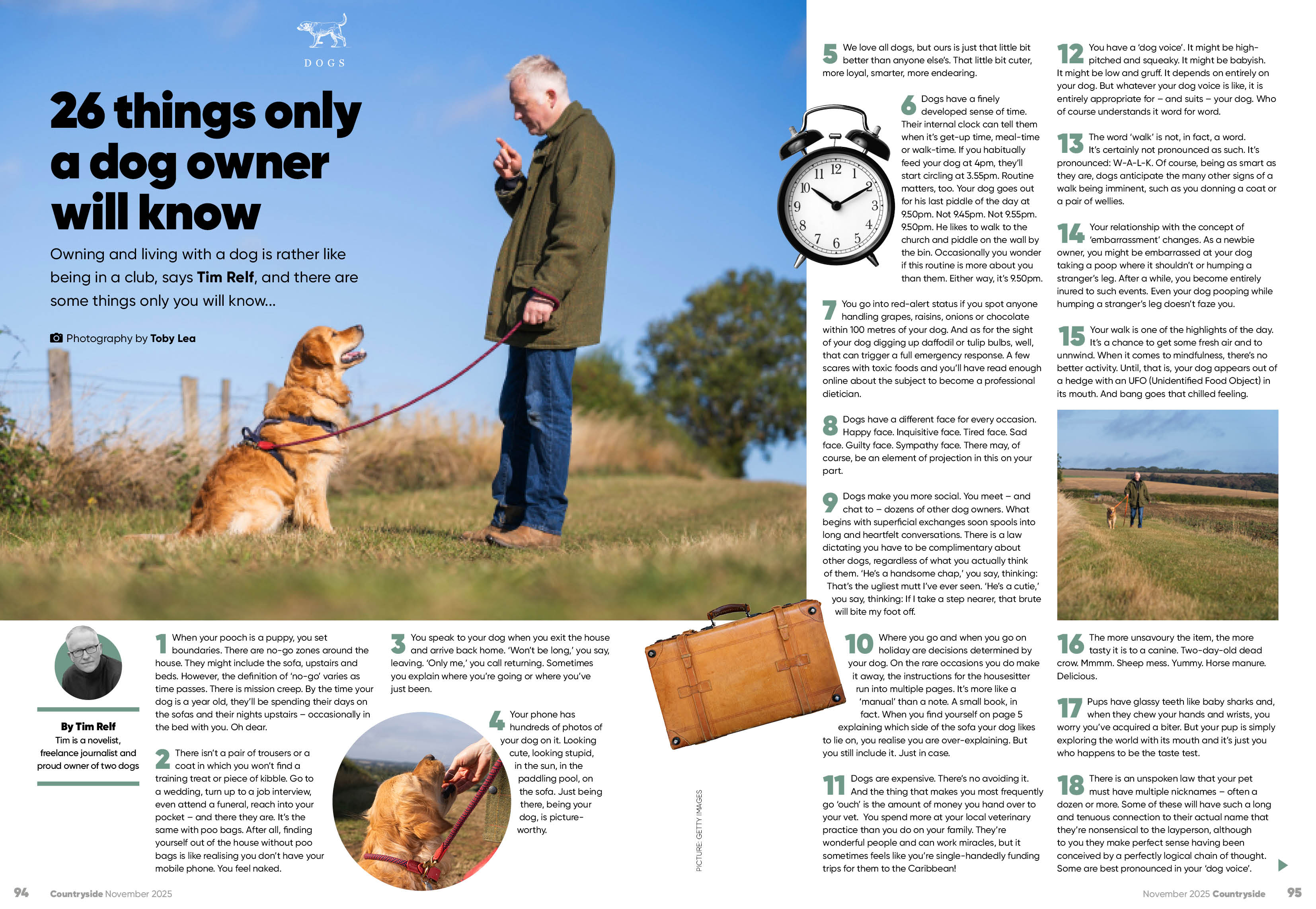 Where would we be without our dogs? They’re our most faithful, enthusiastic and eccentric companions. This month, Tim Relf reflects on some of the quirks of owning and living with a dog – in his case, two Golden Retrievers. From always finding training treats in every coat pocket and having a special ‘dog voice’, to explaining to your four-legged pal where you’ve been or are about to go, there’s invariably a whole raft of ways that you interact with your dog that are sometimes unique to you, but often very typical of the secret lives of dogs (and their owners).
