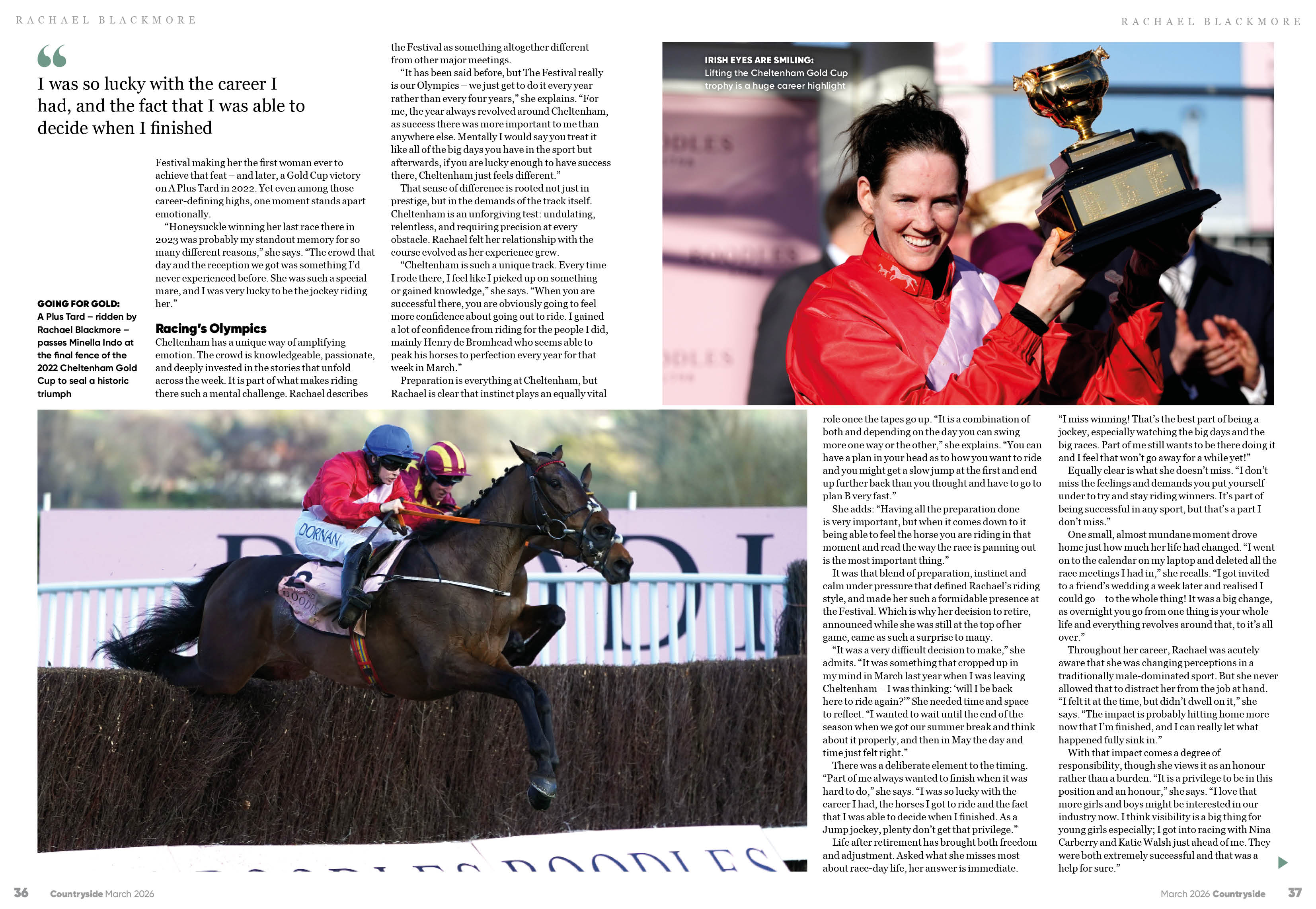 Finally, this month, with the Cheltenham Festival on the horizon, we’ve got an exclusive interview with former jockey and the first woman ever to win the Cheltenham Gold Cup and Grand National - Rachael Blackmore.